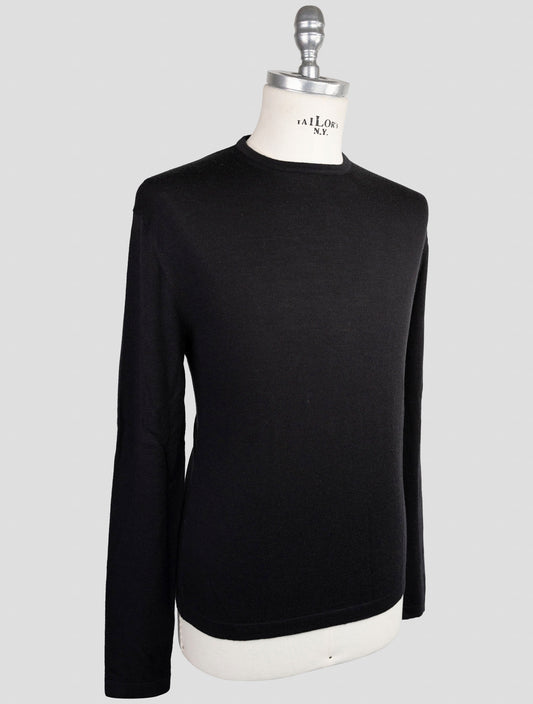 Kiton KNT Black Virgin Wool Silk Crewneck Sweater Men's Luxury