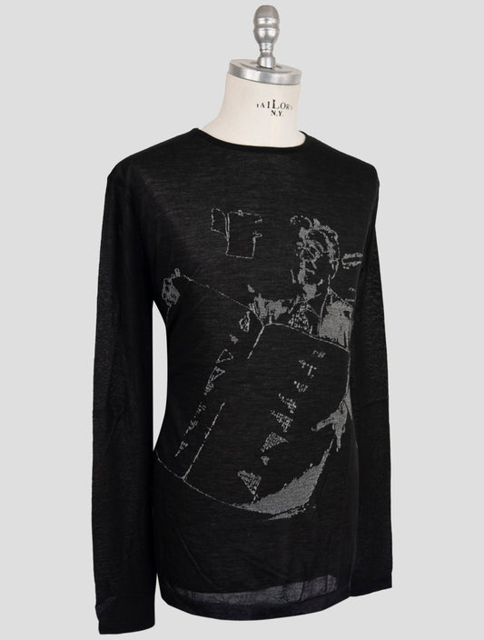 Kiton KNT Cashmere Silk Crewneck Sweater Black Handmade Italy
