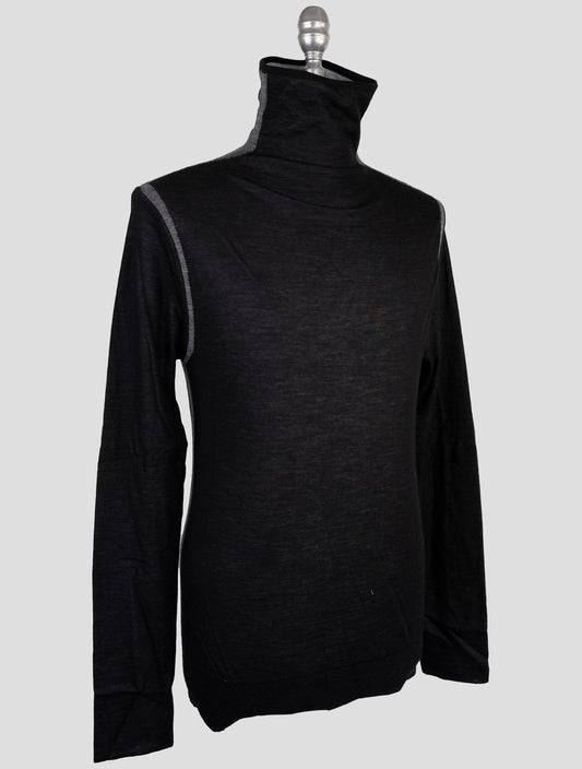 Kiton KNT Wool Cashmere Half Neck Sweater Dark Gray Handmade