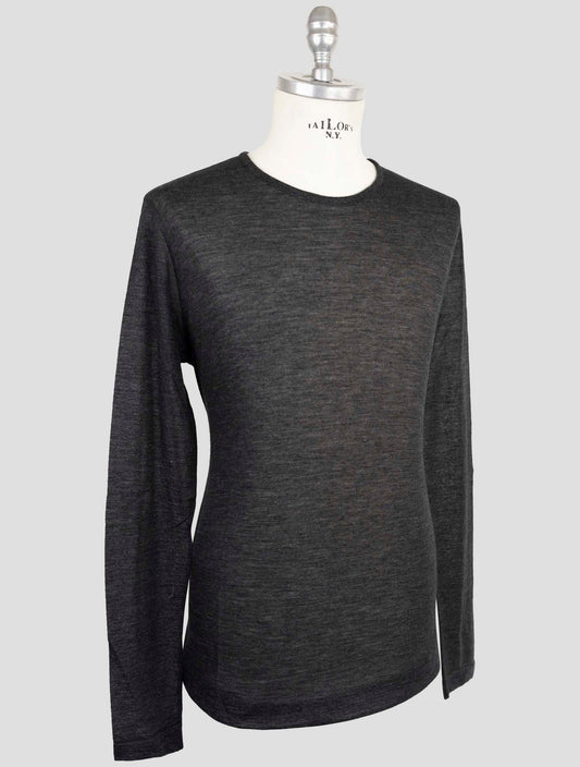 Kiton KNT Cashmere Silk Crewneck Sweater Dark Gray Italian Handmade