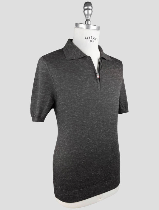 بولو كيتون رمادي داكن من الحرير والكشمير والكتان
