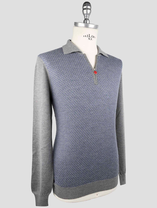 سويتر بولو من كيتون باللون الأزرق الرمادي من الكشمير والحرير