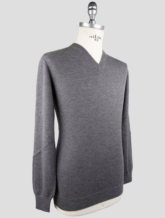 سويتر كيتون رمادي من الكشمير والحرير بتصميم V