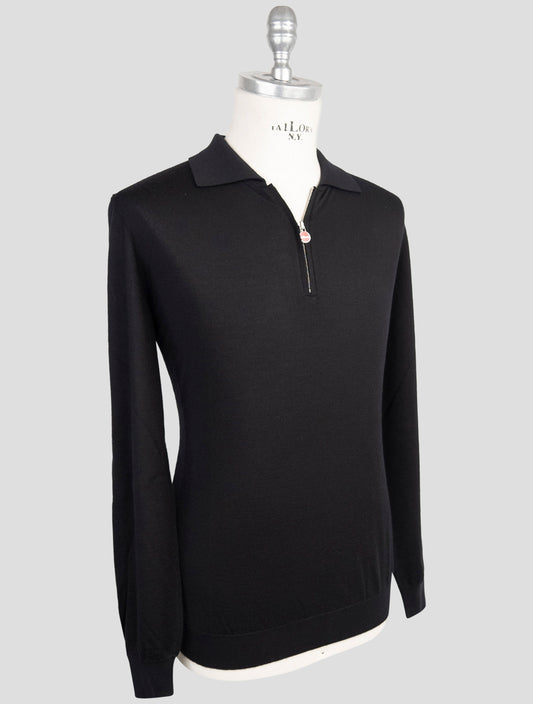 Kiton Black Wool Polo Sweater - Italian Handmade Winter Knit