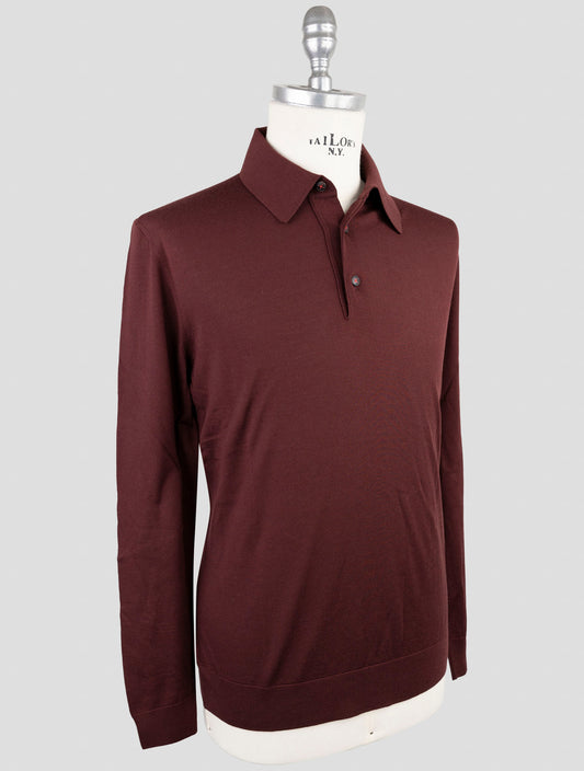 Kiton Wool Polo Sweater Burgundy Blue Diamond Pattern Made Italy