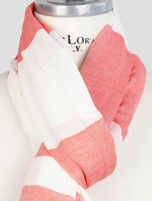 Kiton Red White Striped Cotton Scarf - Premium Italian Handmade