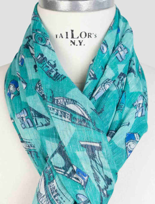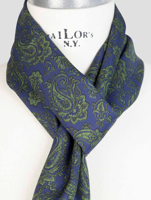 Kiton Handmade Paisley Silk Scarf Blue Green Italian Luxury