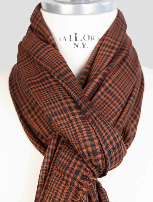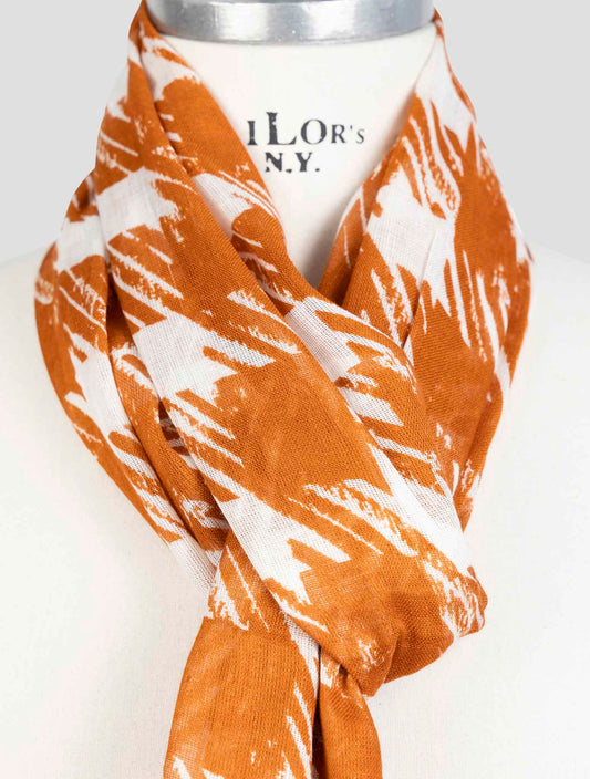Kiton Handmade Linen Viscose Scarf Orange White - Italian Luxury
