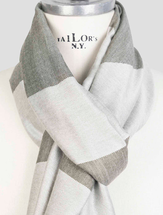 Kiton Cashmere Silk Scarf Gray Green Italian Handmade Premium