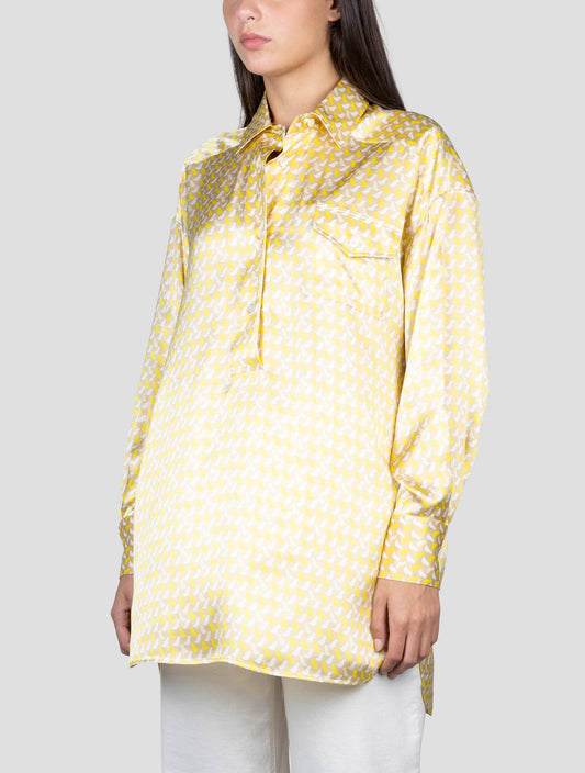 قميص نسائي من حرير 100% من كيتون باللون الأبيض والأزرق