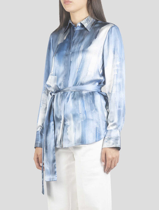 Kiton Women's Light Blue Pure Silk Shirt - Handcrafted Naples