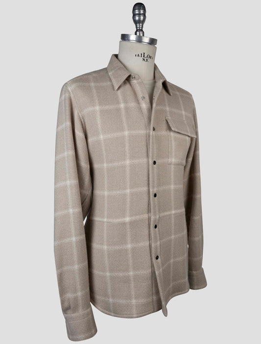قميص كيتون للرجال من الكشمير والحرير والكتان البيج