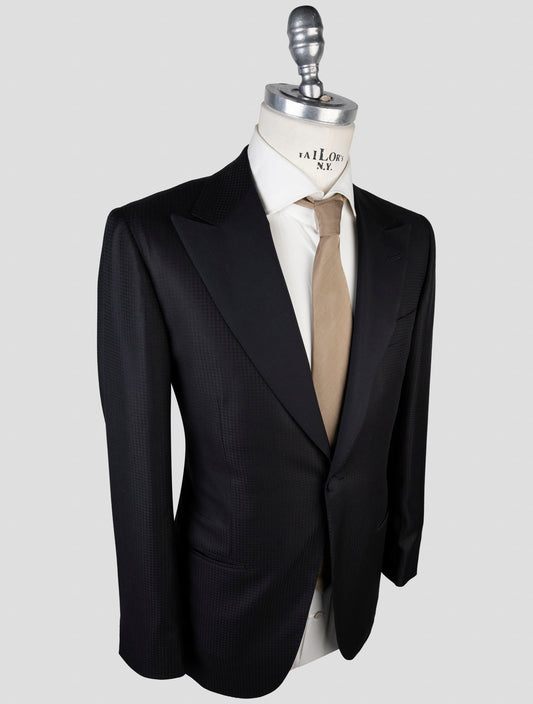 بدلة توكسيدو سوداء من كيتون مصنوعة يدويًا من صوف إيطالي