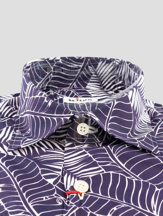 Kiton Premium Cotton Dress Shirt Blue White Geometric Pattern