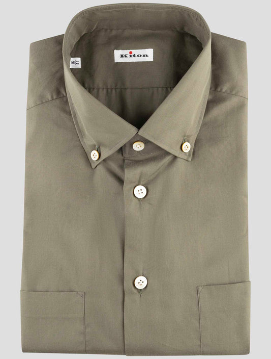 Kiton Premium Green Cotton Dress Shirt - Handmade Italian
