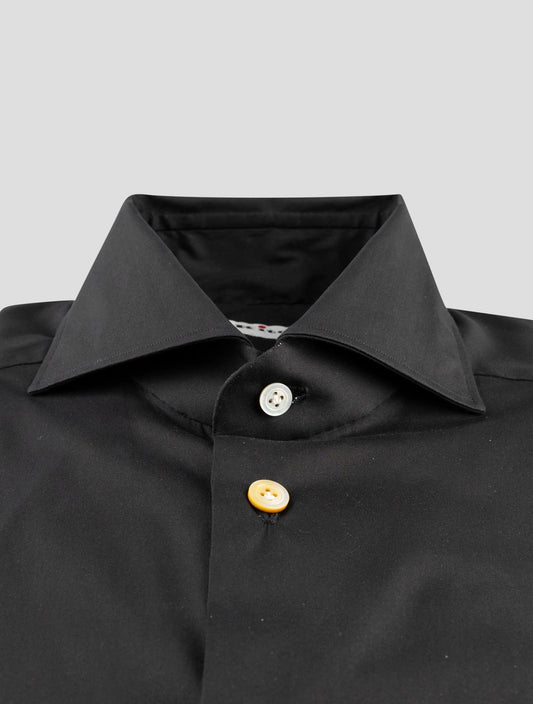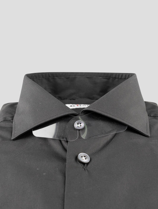 Kiton Black Cotton Stretch Dress Shirt - Handmade Italian Regular Fit