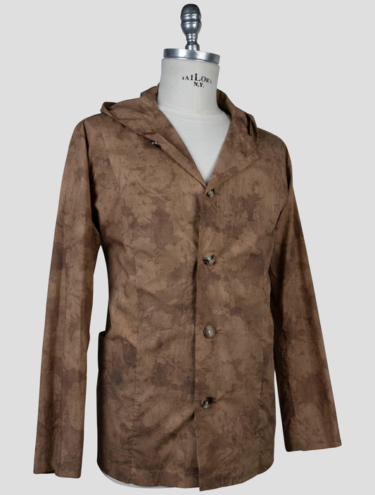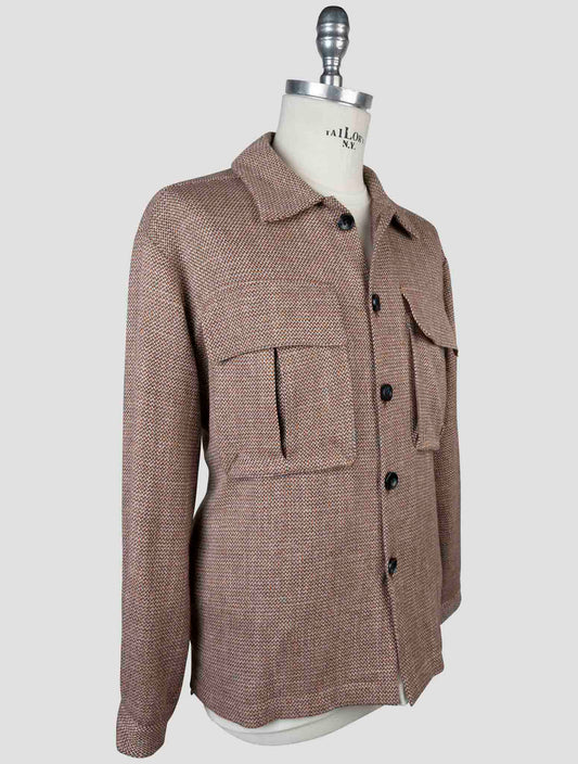 قميص كيتون بني من صوف عذري وحرير وكتان