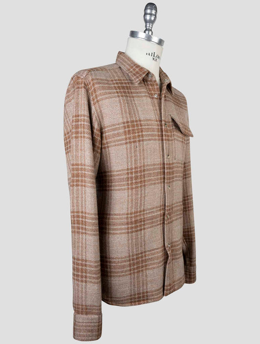 قميص كيتون بني من الكشمير والصوف الخالص والحرير والكتان