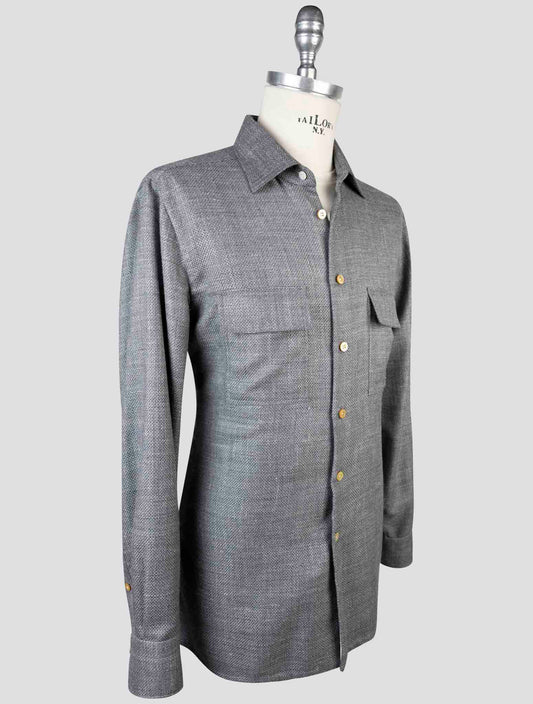 قميص كيتون رمادي من الكشمير والصوف الخالص والحرير والكتان