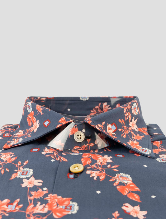 Kiton Blue Floral Cotton Shirt - Handmade Italian Dress Shirt
