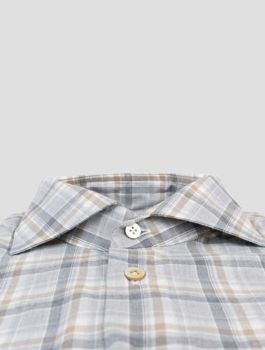 Kiton Gray Cotton Shirt - Italian Handmade Plaid Check Pattern