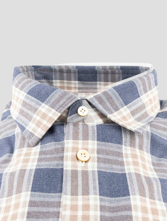 Kiton Brown Cotton Shirt - Handmade Italian Check Pattern