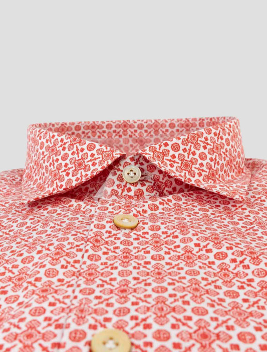 Kiton Red White Floral Cotton Shirt - Handmade Italian