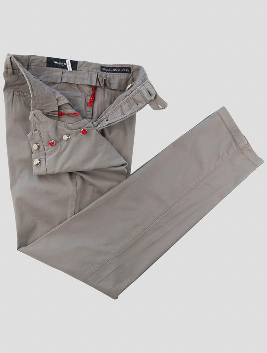 Kiton Premium Cotton Elastane Gray Pants - Handmade Italian Button Fly