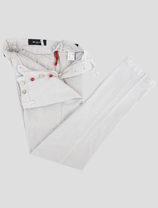 Kiton White Cotton Velvet Pants - Italian Handmade Dress Trousers