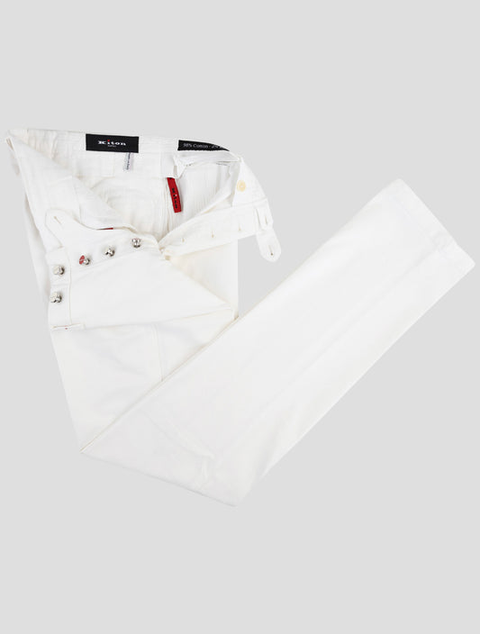 Kiton White Cotton Elastane Pants - Handmade Italian Trousers