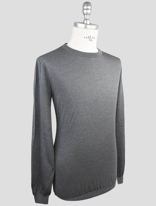 Kiton Premium Wool Crewneck Sweater Dark Gray Italian Made