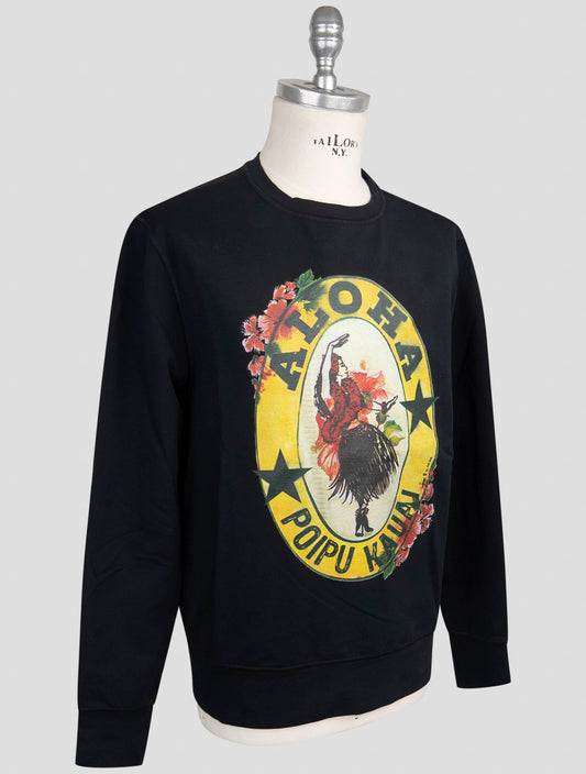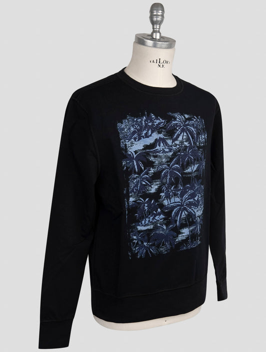 Kiton Premium Cotton Crewneck Sweater Black Italian Handmade