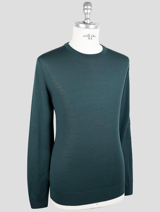 Kiton Premium Green Wool Crewneck Sweater Diamante Blue Detail