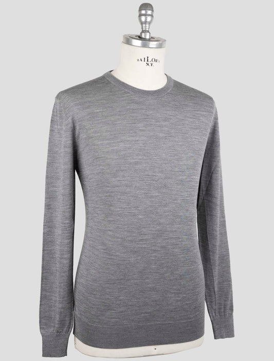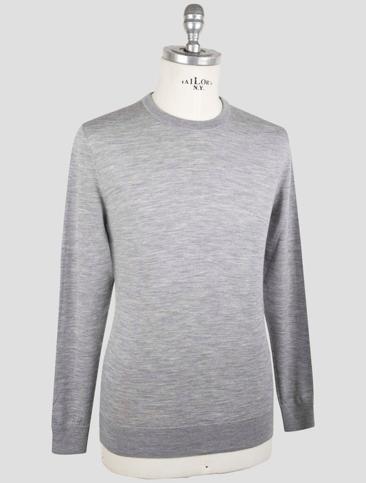 Kiton Gray Wool Crewneck Sweater - Premium Italian Diamante Blu