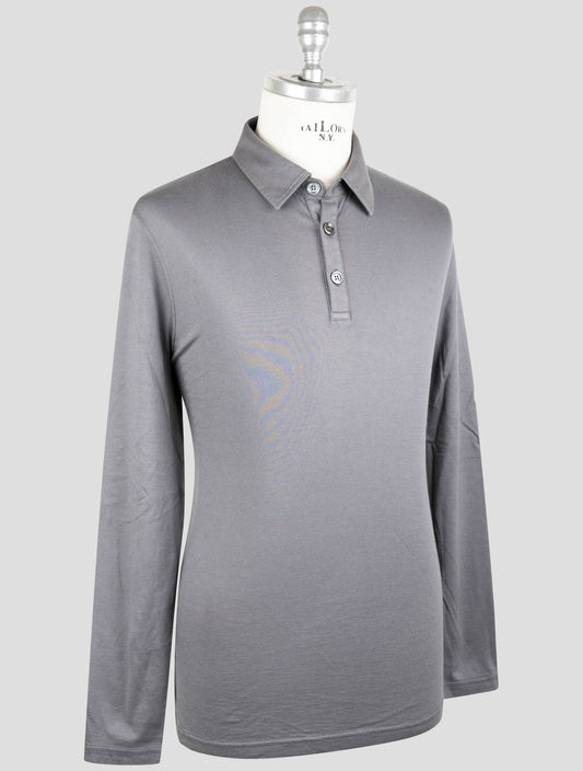 Kiton Premium Gray Cotton Polo Sweater - Italian Handmade