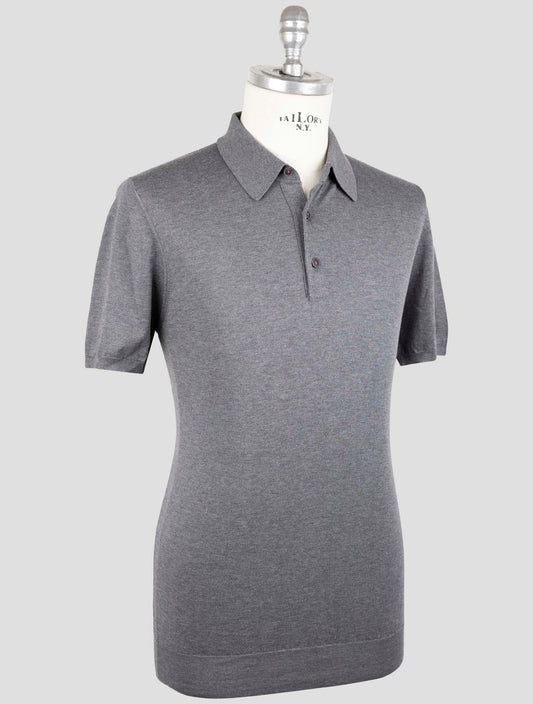 Kiton Premium Cotton Cashmere Polo Sweater Gray Italian Made