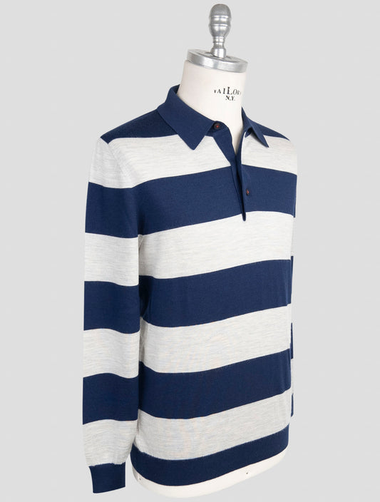 Kiton Blue Cotton Cashmere Sweater Polo Corean Collar