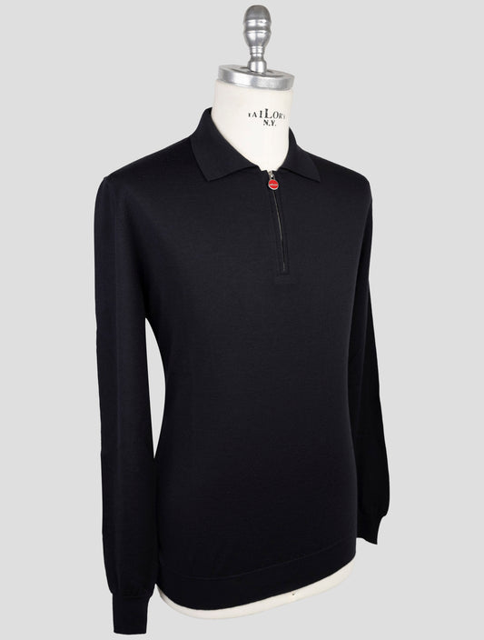 Kiton Premium Cashmere Silk Polo Sweater Black Italian