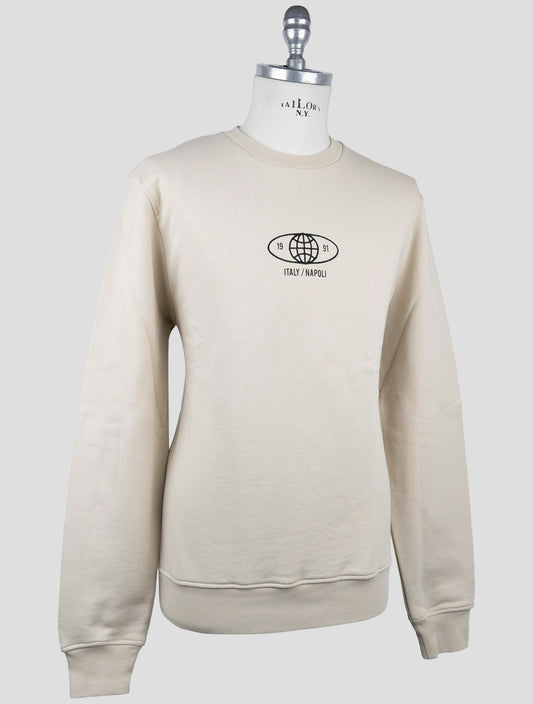 Kiton KNT Premium Cotton Crewneck Sweater Beige Italian Made