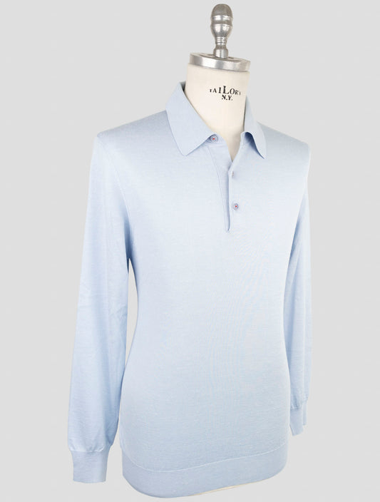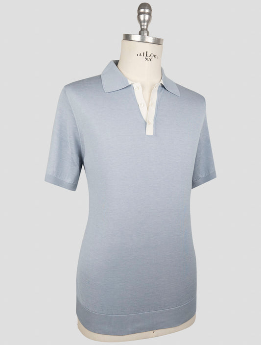 Kiton Premium Silk Cotton Polo Light Blue Italian Crafted