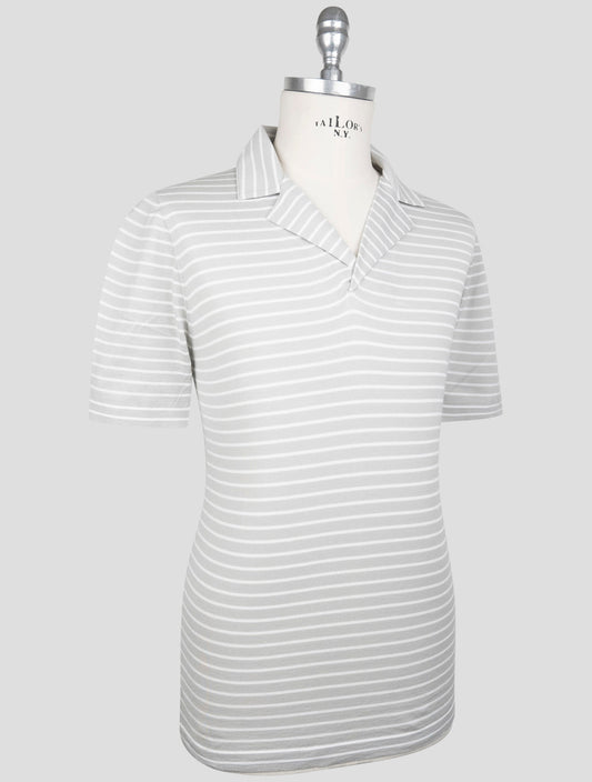 Kiton Premium Cotton Striped Polo - Light Gray White Italian