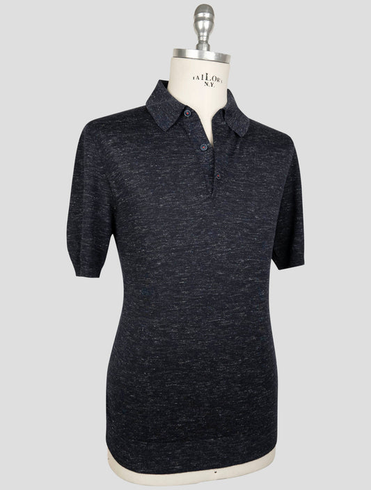 Kiton Luxury Blue Silk Cashmere Linen Polo - Italian Handmade