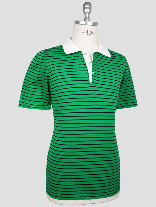 Kiton Premium Cotton Polo Shirt Green Blue Striped Made Italy
