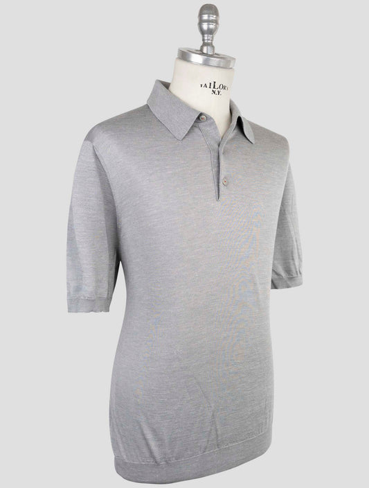 Kiton Handmade Gray Silk Cashmere Linen Polo Shirt - Italian