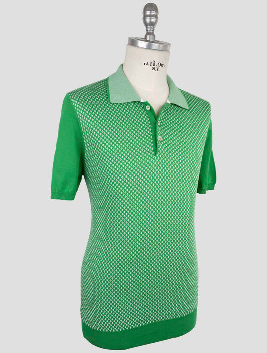 Kiton Premium Cotton Polo Green White Two-Tone Made Italy