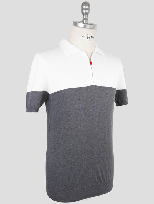 Kiton Premium Cotton Half-Zip Polo - Gray White Italian Made