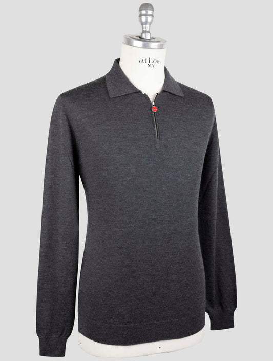 Kiton Premium Wool Half Zip Polo Sweater Dark Gray Italian