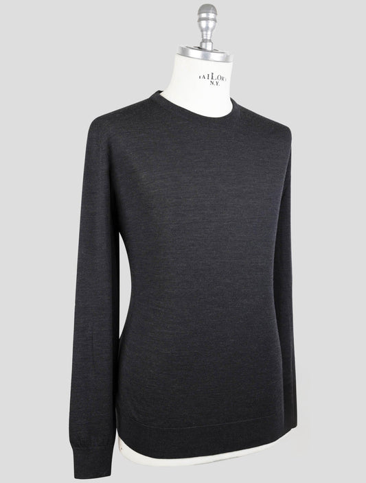 Kiton Premium Wool Crewneck Sweater Dark Gray Diamante Blue