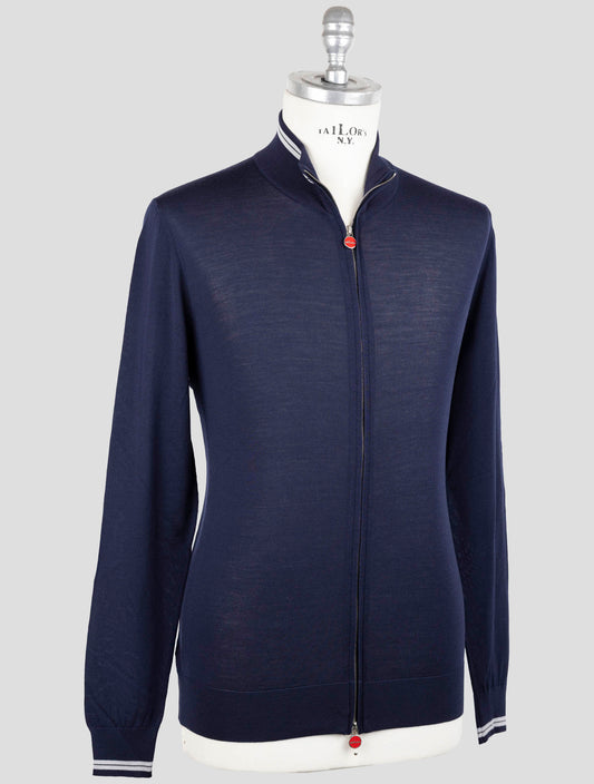 Kiton Blue Wool Full Zip Sweater - Italian Luxury Knitwear