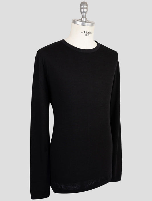 Kiton KNT Black Cotton Crewneck Sweater - Handmade Italian Knitwear